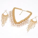 Here are some of the great features of Fashion golden white manmade pearl chandelier earrings collar chain necklace jewelry set